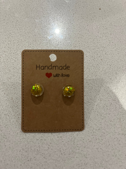 Golden Girl - Hand Made Golden Glitter Stud Earrings