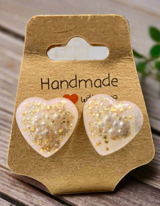 Pearl Goddess - Handmade Pearly White Resin Earrings with Gold Glitter